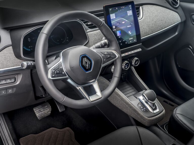 W centrum deski rozdzielczej znajduje się również system multimedialny Renault EASY LINK, który w niektórych modelach korzysta z dużego ekranu dotykowego o przekątnej 9,3 cala. Ten system kontroluje główne funkcje pojazdu i może być wzbogacony o specjalne operacje, takie jak dostępność stacji ładowania w czasie rzeczywistym. Łączność ze smartfonem zapewniają Apple CarPlay i Android Auto.