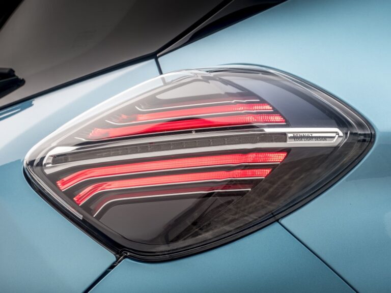 W centrum chromowanej kratki znajduje się duże logo Renault, które teraz ma efektowne „holograficzne” wzornictwo, nadające 3D efekt na płaskiej powierzchni. Emblemat podwaja się jako gniazdo do ładowania, które otwiera się, odsłaniając zarówno wtyczkę typu 2 AC, jak i złącze do nowej opcjonalnej szybkiej ładowarki 50 kW.