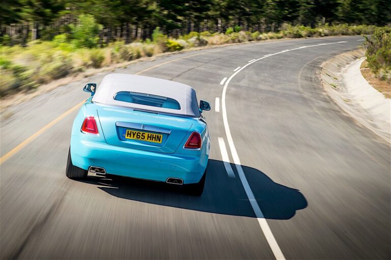 Patrząc na Rolls-Royce Dawn z profilu, wzrok przyciąga elegancki kształt samochodu. Kształt miękiego dachu jest całkowicie harmonijny i jednorodny, bez brzydkich wklęsłych obszarów lub ostrych podpór, jakie można zobaczyć w miękkich dachach innych producentów. Dodatkowo nowe 21-calowe polerowane i malowane koła 21″ i 20″ zapewniają, że Dawn pozostaje perfekcyjnym, nowoczesnym wyrazem luksusu Rolls-Royce.
