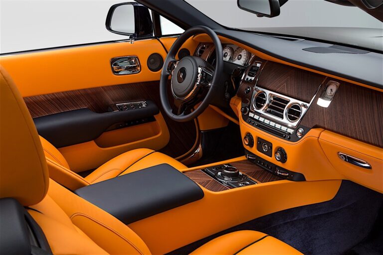 Drewno na pokrywie, wybrane przez klienta, aby odpowiadało jego indywidualnym gustom, spływa w dół 'Waterfall’ między tylnymi siedzeniami i otacza kabinę, ubierając panele drzwi wewnętrznych, zapraszając właściciela, by wsiadł do Dawna.
