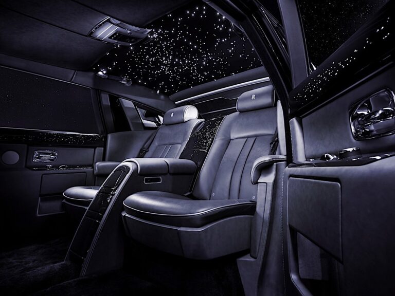 Jak można się spodziewać, ultra-luksusowe wnętrze Phantom zostało wykończone najdelikatniejszą skórą, drewnem i metalowymi detalami, a także dywanami z owczej wełny oraz ukrytymi parasolami z logiem Rolls Royce na deszczowe dni.