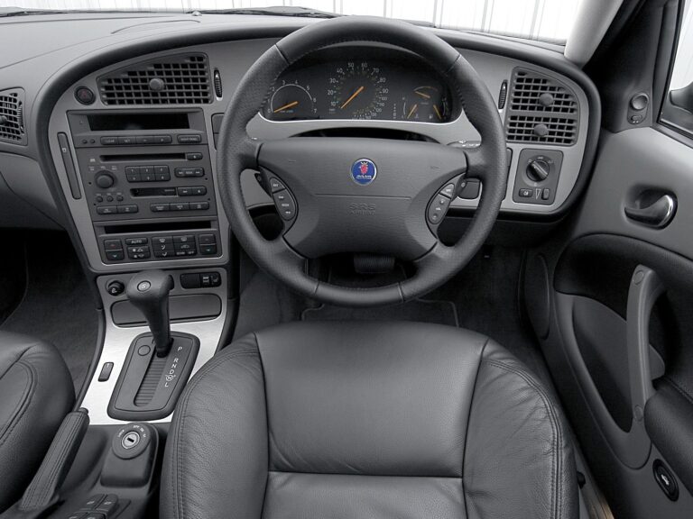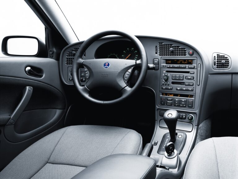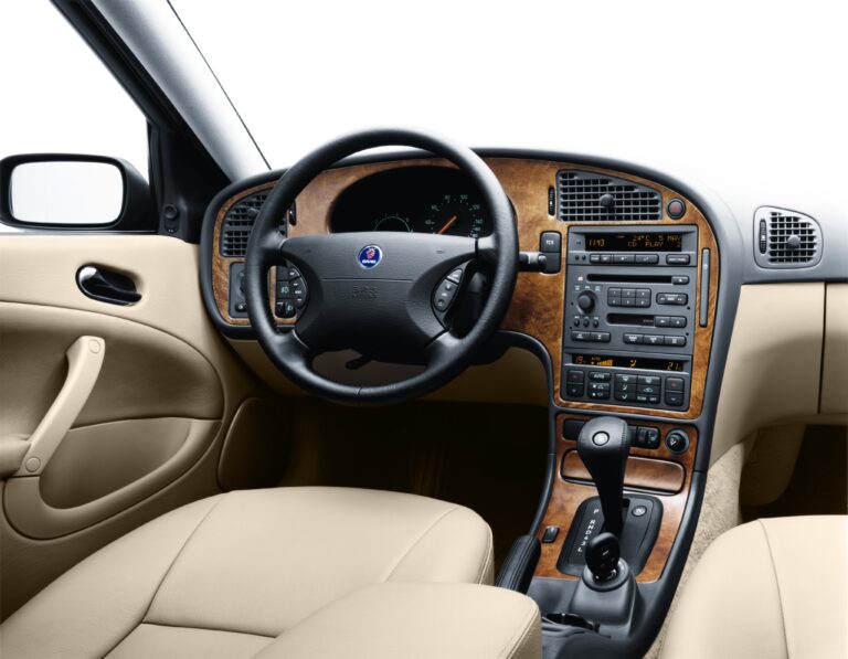 Wewnątrz Saab zainstalował kilka charakterystycznych elementów specyficznych dla swojej marki. Pilot do kluczy umieszczono pomiędzy przednimi siedzeniami, przed hamulcem ręcznym. W zależności od wersji wyposażeniowej, samochód miał wysoko profilowane fotele z przodu. Tylne siedzenia były dzielone i pozwalały zwiększyć przestrzeń bagażową z 1047 litrów (37 cu-ft) do 2064 litrów (72.9 cu-ft), mierzonych do linii dachu.