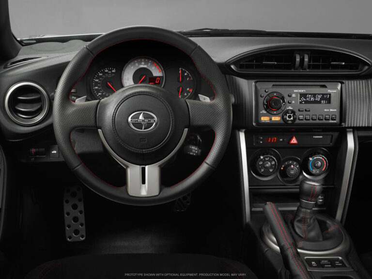 Scion FR-S wyposażony jest w sportowy, skórzany, 365-milimetrowy koło kierownicy, które ma zarówno regulację w pionie, jak i w poziomie.