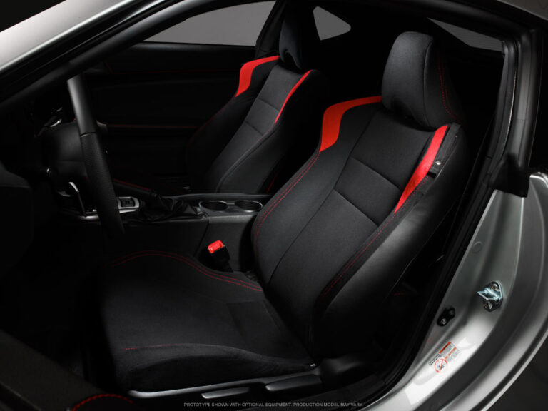 Wnętrze Scion FR-S obejmuje konfigurację siedzeń 2+2, zaprojektowaną z myślą zarówno o formie, jak i funkcji. Wygodne, ale zdecydowane przednie fotele mają głębokie boczki i są zamontowane bardzo nisko, natomiast tylne siedzenie składa się płasko, tworząc elastyczną przestrzeń. Standardowo będą dostępne unikalne dywaniki z logo FR-S.