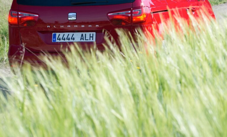 Tył SEAT Alhambra jest wyraźnie zorganizowany. Jednym z jego charakterystycznych elementów jest duży spoiler na krawędzi dachu, który zawiera trzecie światło stopu. Tablica rejestracyjna jest umieszczona pod dużym logo SEAT i napisem „Alhambra” oraz osadzona w zagłębieniu w opadającej linii tylnej klapy.