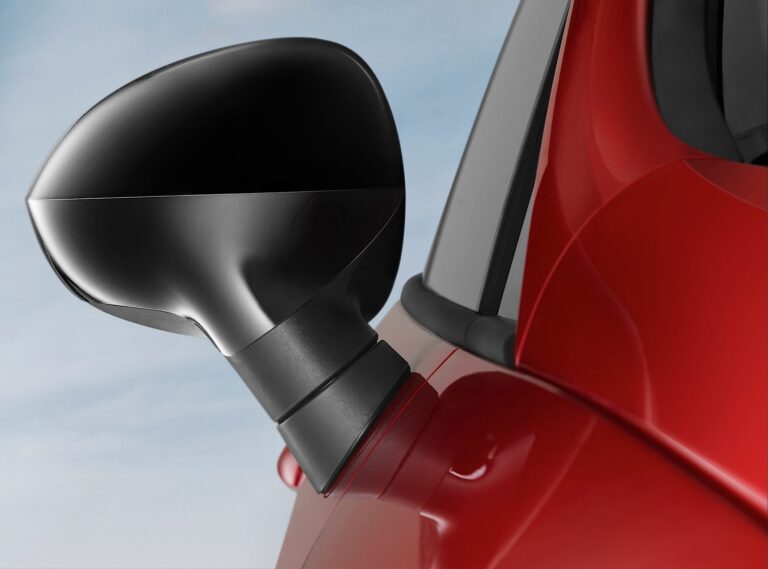 Ogólny, sportowy wygląd pojazdu jest niezaprzeczalny. Widok z boku odkrywa znakomite 17-calowe felgi aluminiowe, których pięcioramienna, podwójnie szprychowa konstrukcja pokazuje ogromne hamulce tarczowe i czwórkę czerwonych zacisków, a także niskoprofilowe opony 215/40. Czarne obudowy lusterek dopełniają całości, kontrastując z czerwonym lakierem modelu Emoción Red.