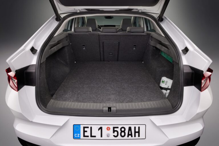 ENYAQ COUPÉ iV oferuje dużo przestrzeni dla pięciu osób i ich bagażu. Długi rozstaw osi oraz płaska przestrzeń podłogowa zapewniają dużą ilość miejsca na nogi. Pomimo opadającej linii dachu, wysokość wnętrza jest na poziomie, jak w ŠKODA OCTAVIA COMBI. Bagażnik ma pojemność 570 l i dzięki niskiej krawędzi załadunkowej oraz opcjonalnej elektrycznej klapie bagażnika można go wygodnie otworzyć za pomocą wirtualnego pedału, co pozwala na otwarcie go przy użyciu ruchu nogi.