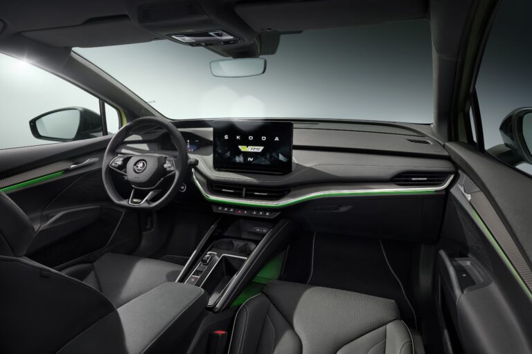 ENYAQ COUPÉ RS iV przyspiesza od 0 do 100 km/h w zaledwie 6,5 sekundy i osiąga maksymalną prędkość 180 km/h – o 20 km/h więcej niż jakakolwiek inna wersja nowego coupé i jest dostępny wyłącznie w uderzającym kolorze Mamba Green.