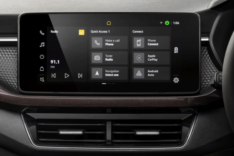 Nowoczesne systemy infotainment, które umożliwiają integrację ze smartfonem i dostęp do mobilnych usług online za pomocą technologii SmartLink, są częścią standardowego wyposażenia nowej ŠKODY KUSHAQ. W podstawowej wersji Active system posiada 7-calowy kolorowy ekran dotykowy oraz wbudowany mikrofon z przodu, który w połączeniu z funkcjonalnością Bluetooth umożliwia prowadzenie rozmów telefonicznych bez użycia rąk w trakcie jazdy. Port USB-A może być używany do ładowania urządzeń elektronicznych lub transferu danych. Smartfon łączy się za pomocą kabla, co również zapewnia dostęp do ŠKODY Connect i internetowego sklepu z aplikacjami. System jest kompatybilny z odtwarzaniem plików muzycznych w formatach MP3 i WMA.