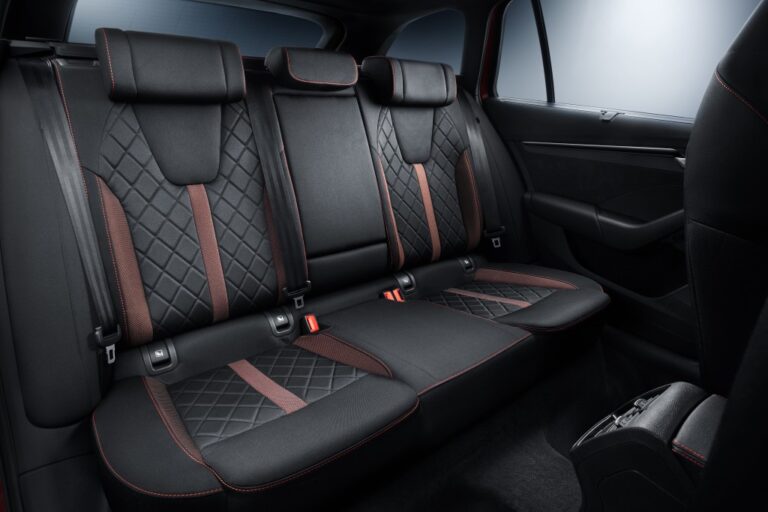 Wnętrze Škody Octavia RS iV wyróżnia się przede wszystkim czarną kolorystyką. Trzypłatkowa, skórzana wielofunkcyjna kierownica sportowa z logo vRS oraz łopatkami do obsługi DSG przyciąga uwagę. Przednie sportowe fotele są obite czarną tkaniną, podczas gdy opcjonalne fotele Ergo mają obszycie z Alcantary® i skóry oraz regulację głębokości siedzenia. Fotele zdobi logo RS oraz kolorowe dekoracyjne szwy w czerwonym lub srebrnoszarym kolorze, które można znaleźć również na skórzanej kierownicy, podłokietnikach oraz na desce rozdzielczej pokrytej Alcantarą®. Dekoracyjne listwy w stylu RS oraz pedały z aluminiowym wykończeniem dopełniają sportowe wrażenie.