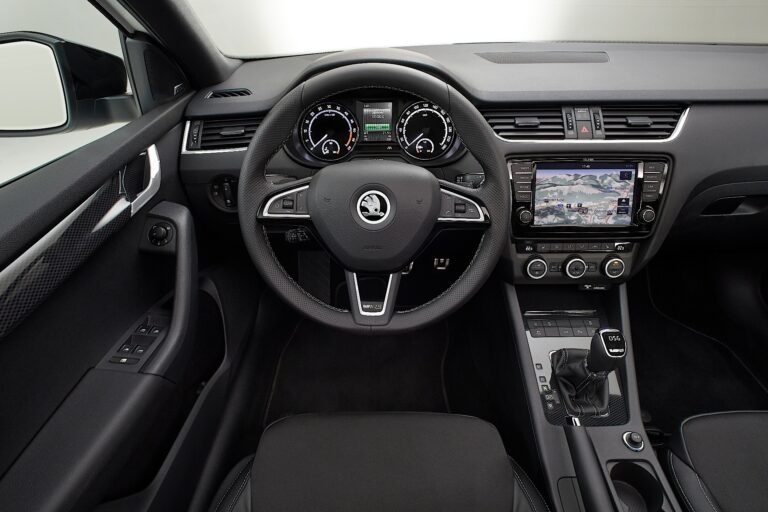 Sportowa czerń dominuje w wnętrzu Škody Octavia RS. Nowym elementem jest ambientowe oświetlenie klamki drzwi wewnętrznych przednich drzwi. Klienci mogą wybierać między nowo zaprojektowanymi sportowymi fotelami RS w tkaninie i skórze lub w pełnej skórze, zdobionymi czerwoną lub szaro kontrastującą nicią. A sportowa kierownica z perforowanej skóry jest teraz jednym ze standardowych elementów. Zarówno gałka zmiany biegów, jak i uchwyt hamulca ręcznego pokryte są skórą. Listwy progowe i pedały są ze stali nierdzewnej. Zestaw wskaźników z kolorowym wyświetlaczem Maxi DOT odzwierciedla ekskluzywny design RS. Kierownica, zmiana biegów, listwy progowe, fotele i dywaniki mają emblemat RS.
