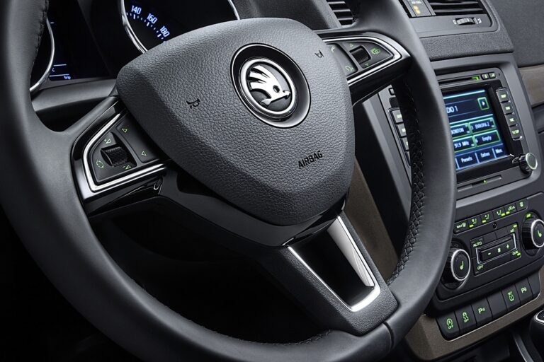 Nowe Yeti ma nową, trójramienną kierownicę we wszystkich wersjach i liniach designu. Regulowana w wysokości i głębokości kierownica jest dostępna w siedmiu różnych wersjach. W zależności od linii wyposażenia i życzeń klientów, dostępne wersje obejmują PUR z elementami chromowanymi, skórzaną z elementami chromowanymi, skórzaną z elementami chromowanymi i przyciskami do wielofunkcyjnej kontroli audio oraz skórzaną z elementami chromowanymi i przyciskami do wielofunkcyjnej kontroli audio i telefonu. Od 2014 roku dostępne będą również dwie niezwykle sportowe skórzane kierownice, zarówno z przyciskami do wielofunkcyjnej kontroli audio i telefonu, jak i bez nich.