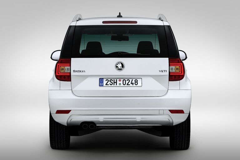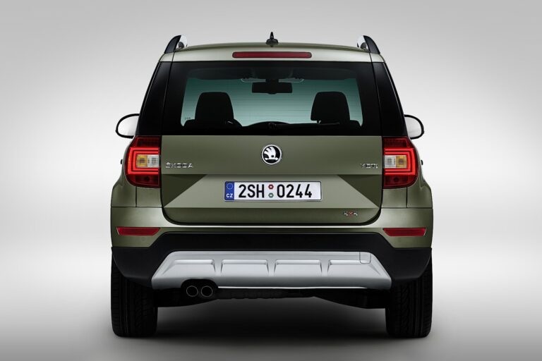 Wizualna różnica między obiema wersjami Yeti jest najbardziej zauważalna w dolnej części tylnej części. Skoda Yeti Outdoor ma zderzak tylny z wyraźniejszą, odbijającą światło powierzchnią w kolorze nadwozia oraz solidnymi elementami bezpieczeństwa w kolorze czarnym i srebrnym. Zderzak miejskiego Yeti jest całkowicie pomalowany w kolorze nadwozia i zawiera centralny element bezpieczeństwa wykonany z srebrnego plastiku.