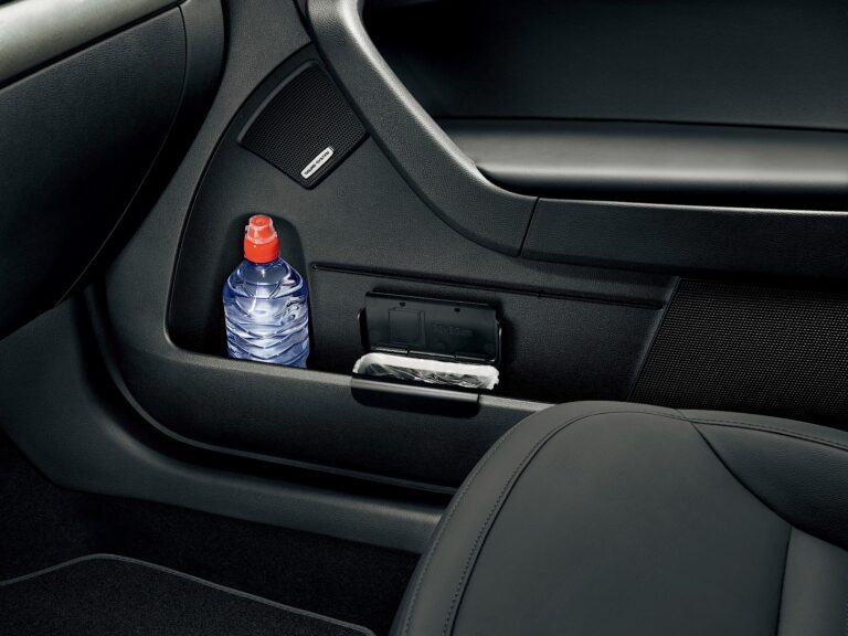 Duża i opcjonalnie klimatyzowana przestrzeń do przechowywania pod podłokietnikiem w konsoli centralnej (Jumbo Box) zapewnia dużą przestrzeń na różne przedmioty. Inne przedmioty można przechowywać w schowkach w centralnej części deski rozdzielczej i pod fotelem pasażera z przodu (przykryte). Schowek na okulary nad lusterkiem wstecznym jest w zasięgu zarówno kierowcy, jak i pasażera z przodu. Paragon parkingowy można przymocować do uchwytu na bilety w wewnętrznej wykończeniu na lewym słupku A. Butelki można przechowywać bezpiecznie – dwie butelki o pojemności 0.5 litra w konsoli centralnej, jedna butelka o pojemności 1 litra w każdej przedniej bocznej kieszeni oraz jedna butelka o pojemności 0.5 litra w każdej tylnej bocznej kieszeni. Na tylną stronę Jumbo Box klienci mogą zamówić dodatkowy uchwyt na butelkę o pojemności 1.5 litra.