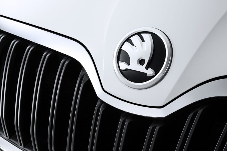Logo Skody nie jest już zintegrowane w osłonie chłodnicy, lecz delikatnie wytłoczone w centrum (’nos’) maski. Logo jest wykonane w chromie na matowej czarnej powierzchni, otoczone delikatną chromowaną linią. Ta prestiżowa pozycja jest punktem wyjścia do precyzyjnie uformowanych linii nowej maski.