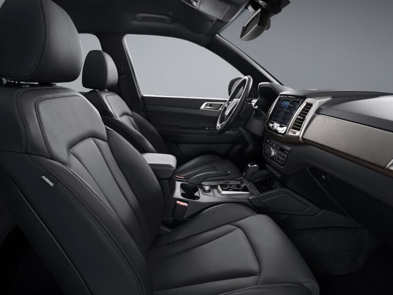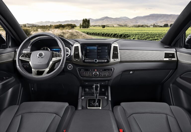W oparciu o nowy Rexton, wnętrze Musso jest całkowicie nowe i oferuje bardzo wysoki standard wykończenia, dopasowania i detali. Może zaskakiwać w przypadku pojazdu użytkowego, ponieważ wnętrze emanuje elegancją i nowoczesnym klimatem, co przypomina premium SUV, ale nadal pozostaje solidne i trwałe, dopełniając zewnętrzny wygląd pickupa.