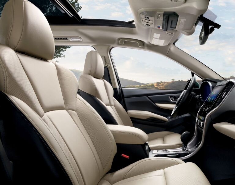 Najwyższy model Touring wyróżnia się satynowymi, srebrnymi lusterkami bocznymi z zintegrowanymi kierunkowskazami, chromowanymi uchwytami drzwi, chromowaną osłoną przedniego zderzaka oraz osłoną z tyłu. W unikalnym wnętrzu znajdują się siedzenia i tapicerka w kolorze Java Brown oraz ulepszona skórzana kierownica oraz drewniane akcenty w matowym wykończeniu. Standardowe trójstopniowe wentylowane fotele kierowcy i pasażera z przodu zwiększają komfort w modelu Touring. Standardowo znajdzie się osiem portów USB oraz 120-woltowe gniazdko do ładowania tabletów, telefonów i laptopów. W wersji Touring uwzględniono wszystkie standardowe funkcje modelu Limited oraz dodano system nawigacyjny multimedialny SUBARU STARLINK o przekątnej 8 cali, premium system audio Harman Kardon® z 14 głośnikami, panoramiczny dach oraz wycieraczki z czujnikiem deszczu. Aby poprawić widoczność kierowcy, unikalne inteligentne lusterko wsteczne oraz kamera frontowa z widokiem 180 stopni dopełniają kompleksową listę funkcji Touring.