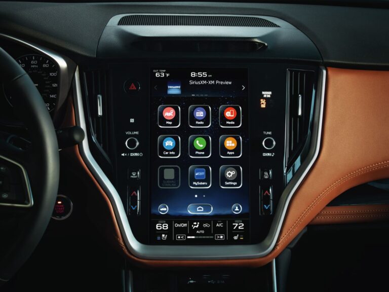 Na pierwszym planie i podkreślającym eleganckie wnętrze Legacy, znajduje się zupełnie nowy tabletowy ekran multimedialny o przekątnej 11,6 cala w pełnej rozdzielczości HD, największy i najbardziej zaawansowany ekran informacyjny w historii Subaru. Standardowy w modelach Premium, Sport i Limited, multimedia Plus 11,6 cala oferuje bezpośrednie sterowanie dotykowe dla multimediów, HVAC i ustawień pojazdu oraz obsługuje komunikację w bliskim zasięgu (NFC). Tak jak w smartfonie, ikony aplikacji mogą być przemieszczane i konfigurowane zgodnie z osobistymi preferencjami. Najwyższej klasy multimedia 11,6 cala z nawigacją dodaje nawigację napędzaną przez TomTom® (3-letnie bezpłatne aktualizacje map) oraz nawigację aktywowaną głosowo, i jest opcjonalna dla modeli Premium, Sport i Limited, oraz standardowa dla Touring. Nowością w Subaru jest możliwość wyświetlania dwóch typów informacji jednocześnie na podzielonym ekranie – np. nawigacja i audio – co poprawia interakcję z użytkownikiem. Zarówno multimedia Plus, jak i multimedia z nawigacją mają dwa pokrętła obrotowe, w tym jedno do regulacji głośności. Model Base również otrzymuje nowy system multimedialny z dwoma ekranami 7,0-calowymi Wide Video Graphics Array (WVGA), które dzielą kontrole multimediów i HVAC.