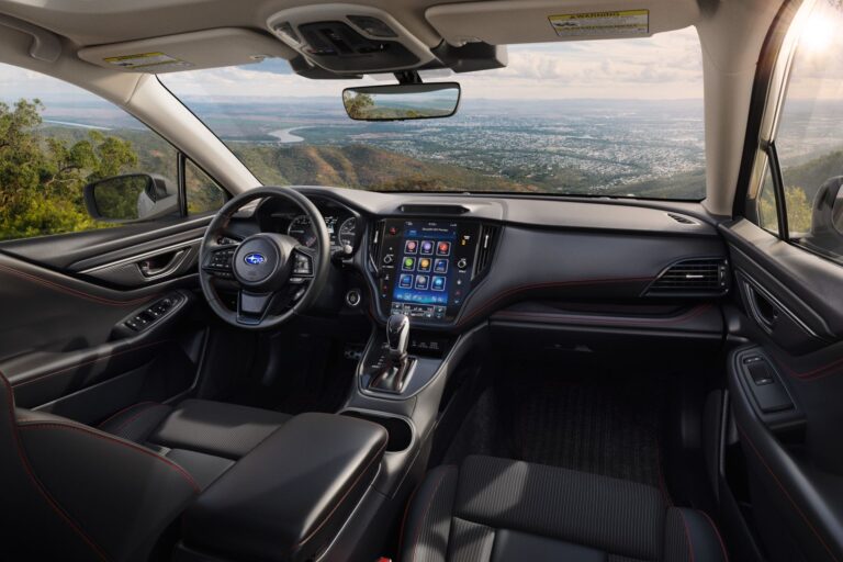 W środku, najważniejsze ulepszenia dokonane przez Subaru dotyczyły systemu multimedialnego Subaru STARLINK. Choć zachowano ten sam ekran w orientacji pionowej o przekątnej 11,6 cala, wprowadzono bezprzewodowe połączenia Apple CarPlay i Android Auto. Dodatkowo, zaczynając od roku modelowego 2023, Legacy zyskało ulepszone systemy bezpieczeństwa, w tym automatyczne hamowanie, wykrywanie martwego pola oraz automatyczne wspomaganie kierownicy w sytuacjach awaryjnych.
