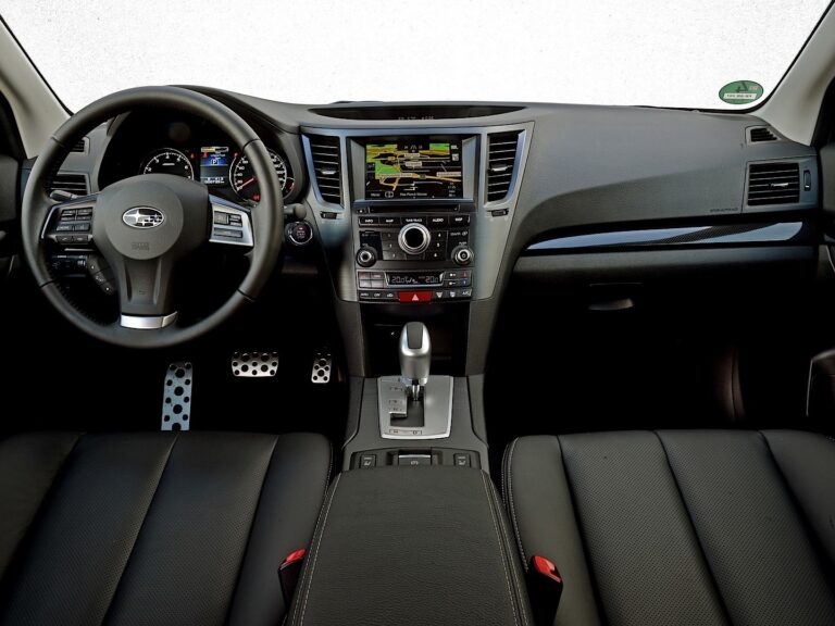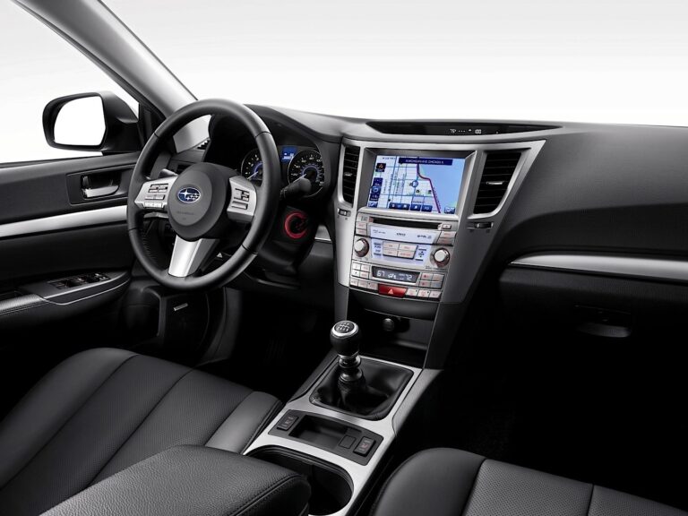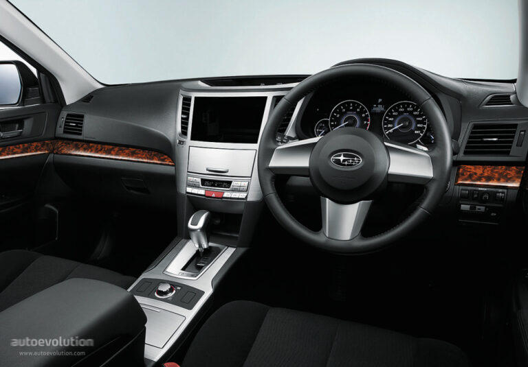 Wnętrze Subaru Legacy 2010 jest nie tylko bardziej przestronne niż wcześniej, ale również zrobiło kolejny krok w kierunku ulepszenia od już docenianego designu poprzedniego modelu. Sportowy, czteroelementowy panel wskaźników został wzbogacony we wszystkich modelach Subaru Legacy o wyświetlacz multimedialny z komputerem pokładowym umieszczonym w centralnej części deski rozdzielczej. Bogato wyglądające wykończenia i detale są wszechobecne, w tym sportowa, 3-ramienna kierownica (obszyta skórą we wszystkich modelach z wyjątkiem podstawowego 2.5i). Nowy elektroniczny hamulec postojowy – z elektronicznym systemem Hill Holder – eliminuje tradycyjną dźwignię hamulca postojowego, zwalniając miejsce w konsoli centralnej.