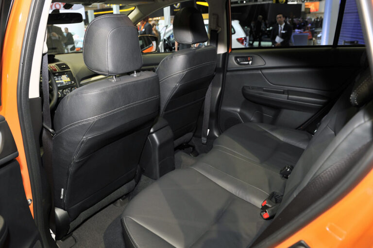 Fotele tylne: Przestrzeń do siedzenia z tyłu jest znacznie bardziej przestronna w Subaru XV. Znaczące usprawnienia obejmują wklęsłe powierzchnie na tylnej części przednich siedzeń i większe otwarte przestrzenie pod nimi, co ułatwia pasażerom tylnym wygodne siedzenie i relaks. Co więcej, pole widzenia kierowcy wstecz zostało poprawione dzięki zastosowaniu składanych zagłówków. A z wbudowanymi zaczepami do fotelików dziecięcych w oparciach foteli, ładowanie i rozładowywanie tylnych siedzeń stało się znacznie łatwiejsze.