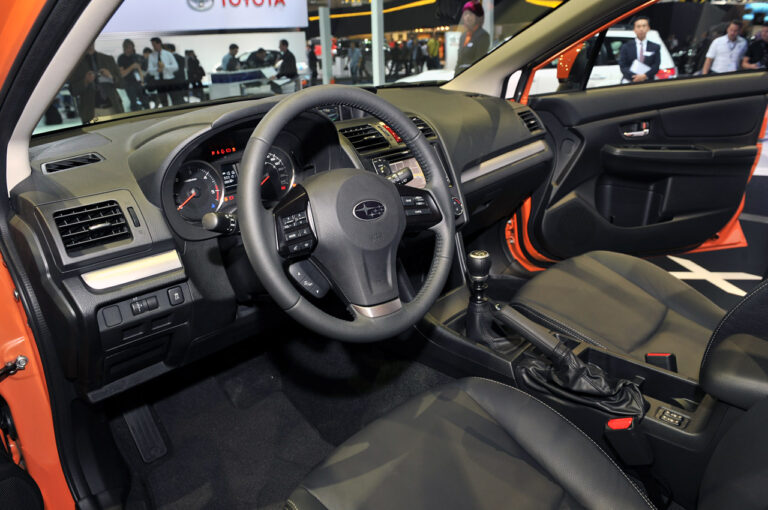 Wewnątrz XV oferował miejsce dla pięciu dorosłych pasażerów, chociaż centralny tunel skrzyni biegów był dość inwazyjny w kabinie. Deska rozdzielcza była zaaranżowana w inny sposób niż w większości samochodów na rynku. Podczas gdy zestaw wskaźników miał klasyczny wygląd, jednostka infotainment pozostała na konsoli centralnej, ale dodatkowy ekran zamontowano na górze deski rozdzielczej dla komputera pokładowego.