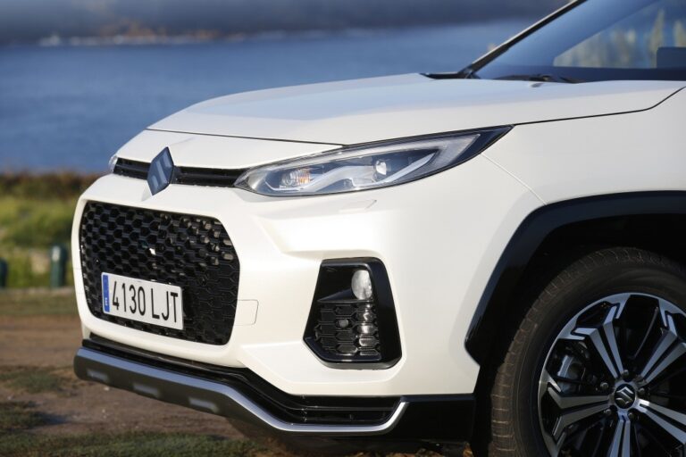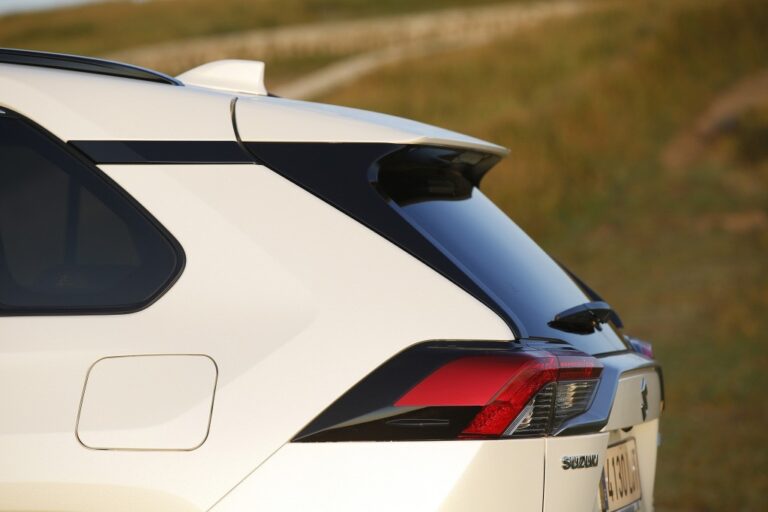 Odważny i sportowy design Suzuki Across budzi zaufanie z każdej perspektywy. Solidne, wielokątne motywy na nadwoziu formują wyrazistą sylwetkę, która jest dodatkowo podkreślona charakterystycznymi nadkolami SUV-a, dużą otwartą kratką oraz przednim zderzakiem z wyraźnym srebrnym akcentem, który uwydatnia wszechstronność pojazdu.