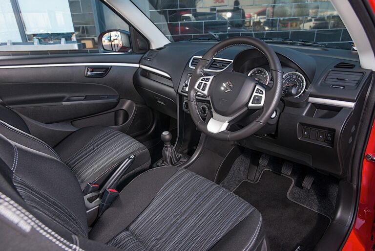 Wewnątrz, trzydrzwiowy Swift miał nowy system audio z łącznością Bluetooth oraz nawigację satelitarną dostępną w opcjach. Podobnie jak w wersji przed liftingiem, model z 2014 roku miał fotele kubełkowe z przodu, które były podniesione z podłogi, aby zrobić miejsce dla pasażerów z tyłu.