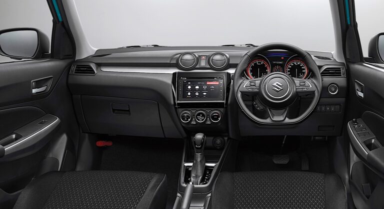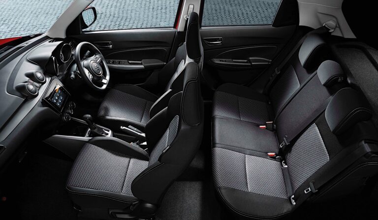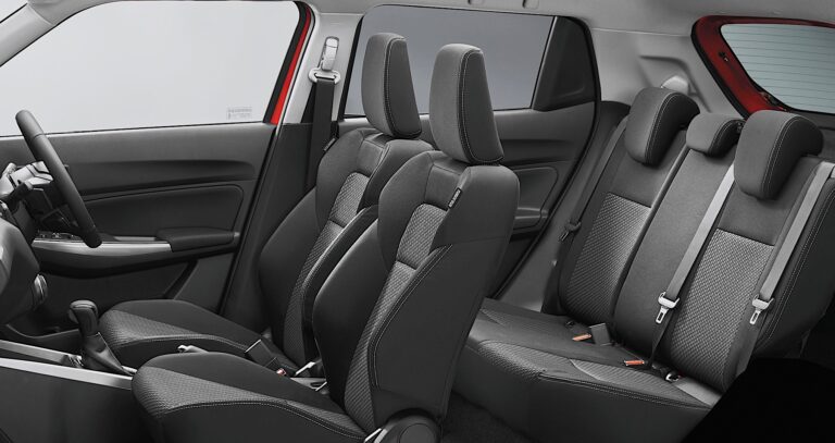 Podczas projektowania wnętrza obniżenie pozycji siedzeń zapewniło wystarczającą przestrzeń na głowę (taką samą jak w poprzednim modelu Swift dla przednich siedzeń) oraz dodało 23 mm przestrzeni pionowej i bocznej dla tylnych siedzeń. Siedzenia przednie zostały przesunięte na zewnątrz o 10 mm, co zwiększyło odległość międzyosiową o 20 mm.