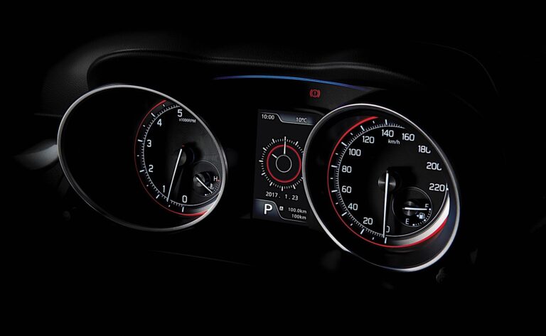 Wnętrze charakteryzuje się wysoko wymiarowym panelem wskaźników, podkreślającym wrażenie zwinnej szybkości, podczas gdy sportowe i eleganckie białe akcenty oraz satynowy chrom w całym kokpicie współpracują z podstawowym czarnym tonem, tworząc wnętrze o wysokim kontraście. Zespół wskaźników zawiera kolorowy lub monochromatyczny wyświetlacz LCD w środku, z wskaźnikiem temperatury płynu chłodzącego oraz wskaźnikiem paliwa zintegrowanym w dwóch głównych wskaźnikach.
