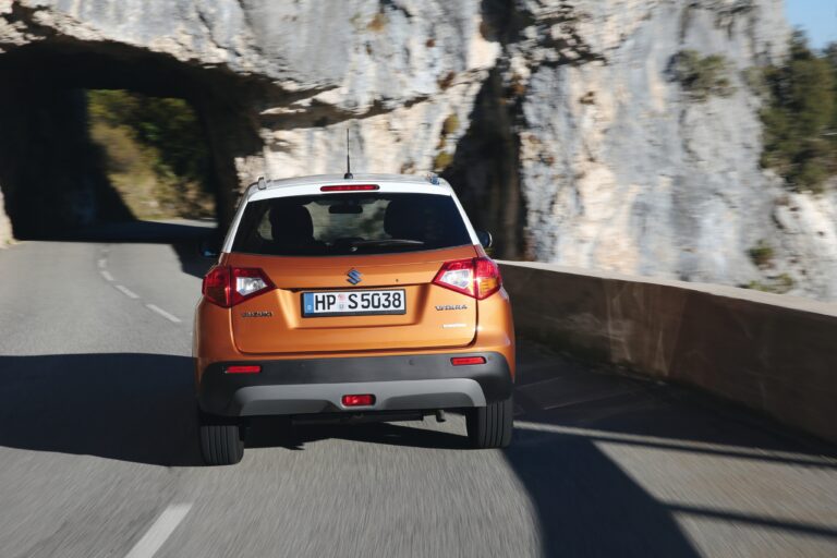SUV-owa konstrukcja nowej Vitara łączy duży minimalny prześwit wynoszący 185 mm z dużymi oponami 215/55R17. Dodatkowo, kąt natarcia wynoszący 18,2° oraz kąt zejścia 28,2° umożliwiają kierowcy łatwe pokonywanie głęboko wykopanych lub zaśnieżonych dróg.