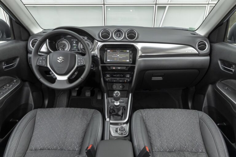 W środku znalazł się nowy układ deski rozdzielczej z kolorowymi okręgami wokół wentylatorów. Starszy wyświetlacz wielofunkcyjny z zespołu wskaźników został zastąpiony nowym, kolorowym wyświetlaczem LCD o przekątnej 4,2 cala. Suzuki zaktualizowało Vitara z 2018 roku o system automatycznego hamowania oraz rozpoznawania znaków drogowych z perspektywy bezpieczeństwa. Adaptacyjny tempomat znalazł się na liście opcji.