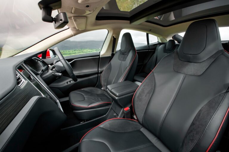Bez silnika spalinowego i tunelu skrzyni biegów, wnętrze Tesla Model S ma więcej przestrzeni bagażowej niż jakikolwiek inny sedan w swojej klasie, a pod maską znajduje się dodatkowy bagażnik. Tesla Model S pomieści pięciu dorosłych i dwoje dzieci w opcjonalnych tylnych fotelikach dziecięcych. Model S Performance przyspiesza od 0 do 60 mph zaledwie w 4,4 sekundy. Wnętrze wyposażone jest w 17-calowy ekran dotykowy z funkcjami internetowymi, co umożliwia streaming radia, przeglądanie internetu i nawigację.