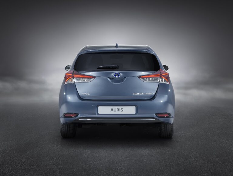 Z tyłu, szersza klapa bagażnika ma potężne, wypukłe i wklęsłe powierzchnie. Na górze znajduje się integralny spoiler dachowy, a nowy, okrągły design tylnego lampy zespolonej podkreśla kształt zarówno tylnego skrzydła, jak i tylnej szyby, a także dodatkową siłę ramienia nad tylnym nadkolem. Nowy zderzak z reflektorami zintegrowanymi na końcach wzmacnia szeroką, stabilną i sportową postawę nowego Toyoty Auris.