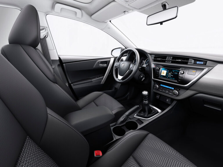 Nowy Auris będzie dostępny w nowej kolorystyce wnętrza w kolorze czarnym z matowymi teksturami. Matowe wykończenie mające wygląd prawdziwej skóry uzyskano poprzez połączenie geometrycznego wzoru kropek z teksturą skóry.