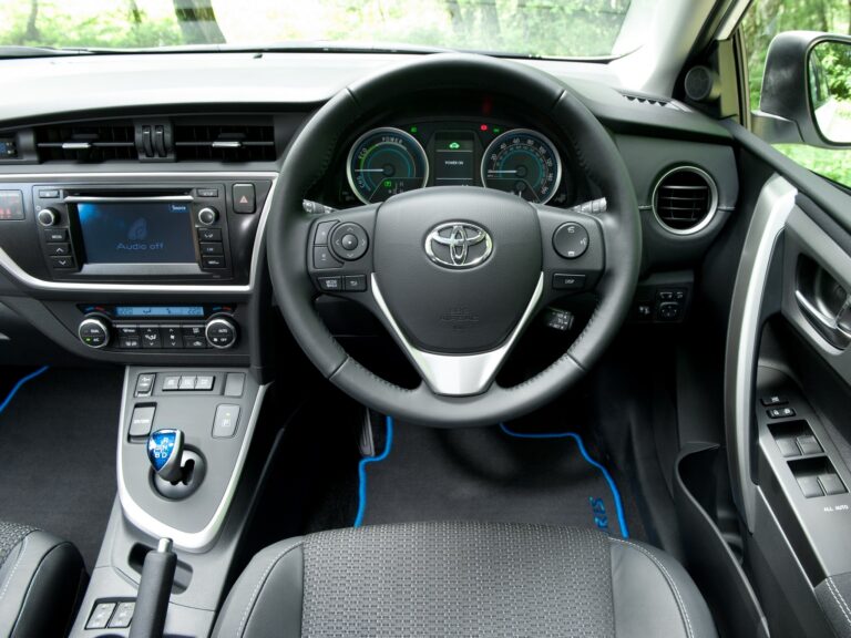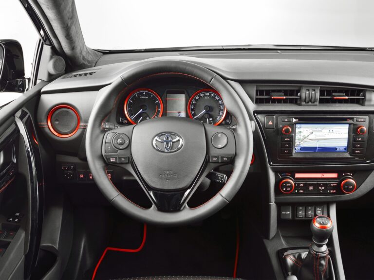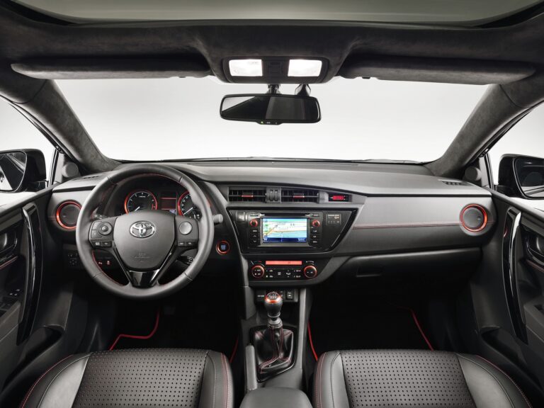 Na przykład, wysoka jakość panelu ozdobnego deski rozdzielczej jest dostępna w sześciu wykończeniach, aby wyraźnie zróżnicować klasy; metaliczna czerń dla klasy Live, metaliczna srebrna dla klasy Active, czarna węglowa dla klasy Style oraz autentyczna czarna skóra dla modeli Lounge. Modele Auris Hybrid Touring Sports mają metaliczne wykończenie w kolorze grafitowym dla klasy Active oraz autentyczną skórę w kolorze lodowym szarym lub czarnym dla modeli Lounge.