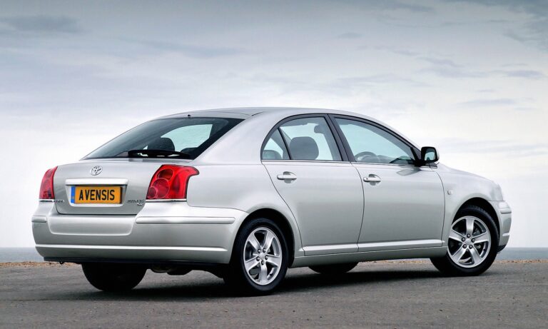 Toyota zaprojektowała Avensisa we Francji, gdzie model Laguna liftback zdobywał uznanie w segmencie średniej wielkości. Jednak nie zrobiło to szczególnego wrażenia na wielu innych klientach. Duże reflektory i wysoki przód, nawet jeśli zaokrąglony na masce, nie zachwycały. Proporcje były odpowiednie, ale raczej nijakie niż śmiałe. Co więcej, tył samochodu często krytykowano za gruby słupek C, który ograniczał widoczność tylnej ćwiartki.