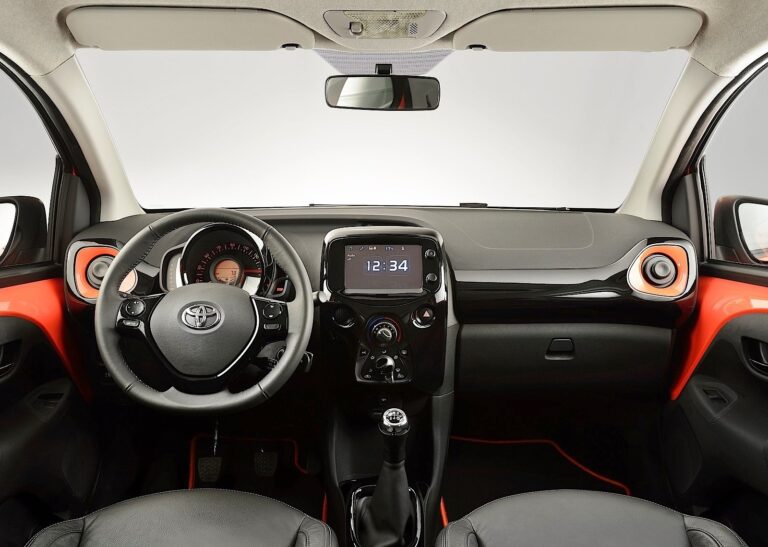 Kształt konsoli centralnej – trapezoidalny – wyznacza motyw wnętrza nowego Aygo i odzwierciedla się w detalach, takich jak kratki wentylacyjne, wykończenia drzwi i otoczenie dźwigni zmiany biegów. Konsola wspiera szeroką deskę rozdzielczą z matowym, antyodblaskowym wykończeniem, umieszczoną między smukłymi słupkami A. Nowe wskaźniki mają wskaźnik złożony z koncentrycznych pierścieni, które są na stałe podświetlone. Zawiera łatwą do odczytania centralną wyświetlacz wieloinformacyjny.