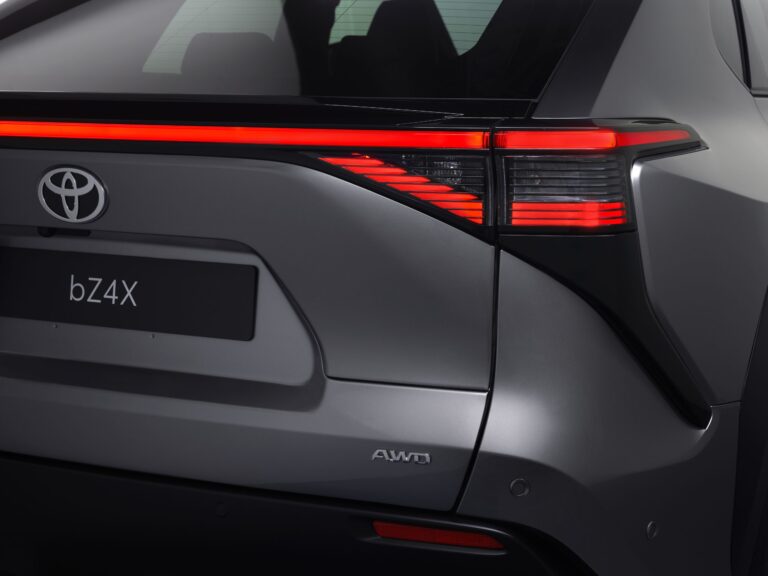 Toyota bZ4X to przestronny, komfortowy SUV, dostępny z nowym systemem napędu na wszystkie koła, który zapewnia wiodące w swojej klasie właściwości terenowe i osiągi dzięki oddzielnym silnikom elektrycznym dla każdej osi. Jego czysty, smukły i potężny design zewnętrzny odzwierciedla zarówno zaawansowane cechy BEV, jak i status SUV-a, oraz debiutuje nowym kształtem „młota” z przodu, który podkreśla silną sylwetkę samochodu.