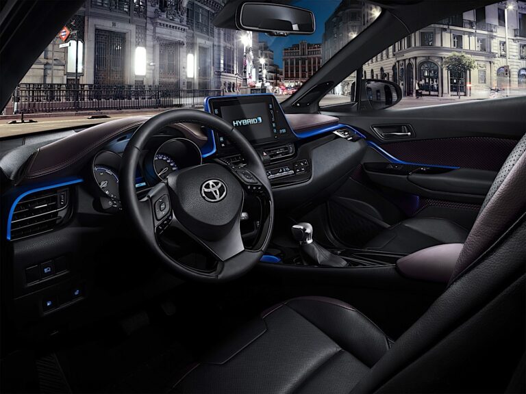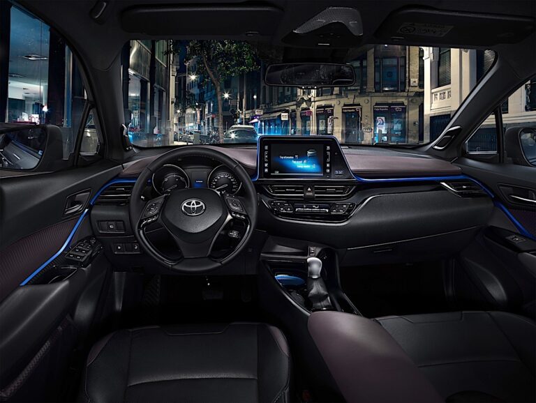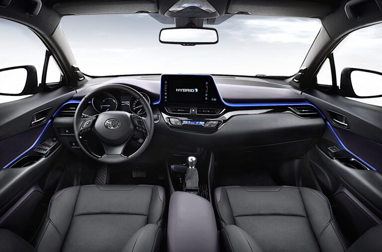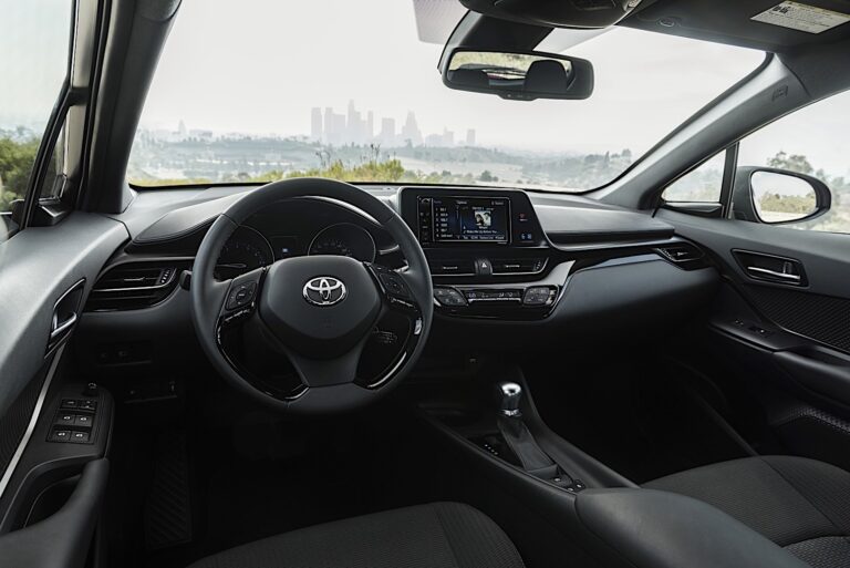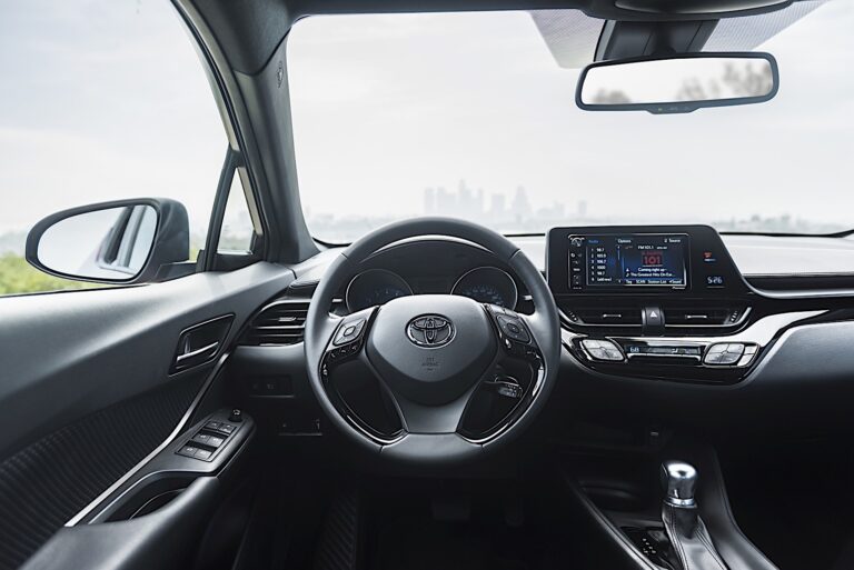 CH-R był ultranowoczesny zarówno wewnątrz, jak i na zewnątrz. Wnętrze wyposażono w futurystyczny centralny ekran dotykowy, który kontrolował niemal wszystko, podczas gdy przejrzysta deska rozdzielcza była łatwa w obsłudze.