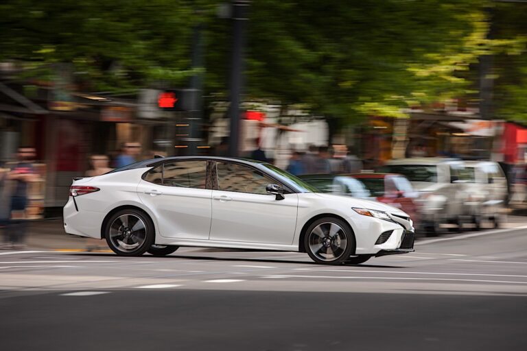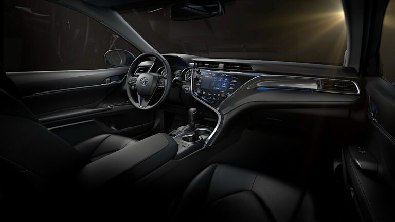 Wszystkie modele Camry 2018 mają 10 standardowych poduszek powietrznych oraz System Bezpieczeństwa Toyoty™, który obejmuje zaawansowaną kontrolę stabilności pojazdu, kontrolę trakcji, system rozdziału siły hamowania, asystenta hamulcowego, system zapobiegający blokowaniu kół oraz technologię Smart Stop. Każda Camry jest także wyposażona w standardową kamerę wsteczną.