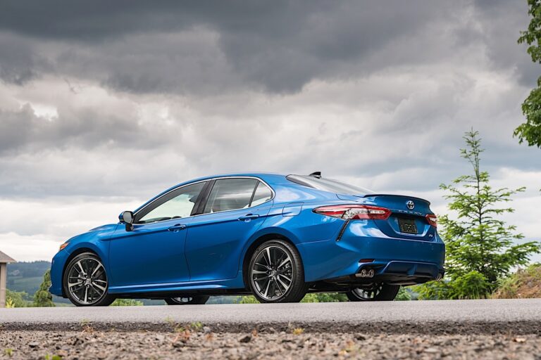 Camry będzie ponownie dostępna w czterech wersjach: LE, XLE, SE i XSE. Nowe modele „Sport” SE i XSE wyróżniają się zauważalnie innym stylem nadwozia niż podstawowe wersje LE i premium XLE, co podkreślają rzeźbione panele boczne, nowe 19-calowe czarne koła z machined-finish (tylko XSE), subtelny tylny spojler, agresywny przedni zderzak oraz tylny zderzak z wbudowanym dolnym dyfuzorem. Twarz jest o wiele bardziej charakterystyczna dzięki dużym bocznym wlotom powietrza po obu stronach dolnego zderzaka z unikalnymi akcentami „Catamaran”, wysokiemu i smukłemu górnemu wlotowi powietrza otaczającemu centralny emblemat Toyoty oraz bardzo ekspresywnej siatkowej kratce. Zreformowany tylny zderzak z wyraźnymi liniami narożnymi i przyciemnionymi tylnymi lampami podkreśla zmiany z tyłu.