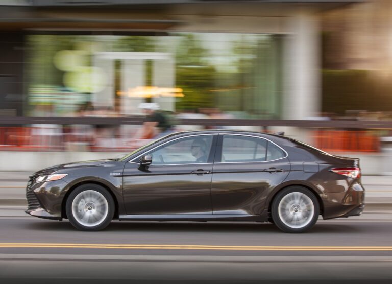 Camry 2018 ma smuklejszy profil niż obecny model. Dzięki obniżeniu punktów biodrowych pasażerów (niemal o 1,0 cala z przodu i o 1,2 cala z tyłu), a tym samym ich pozycji siedzącej, zespół projektowy mógł zmniejszyć całkowitą wysokość pojazdu o około cal w porównaniu do obecnego modelu i wprowadzić niższą linię dachu, nie rezygnując z przestrzeni wewnętrznej. Zachęciło to projektantów do dążenia do kształtu przecinającego wiatr i poprawy aerodynamiki. Uderzające linie charakterystyczne wzdłuż nadwozia podkreślają agresywne przednie i tylne błotniki, nadając Camry sportowy charakter, jakiego wcześniej nie dostrzegano w tym modelu.