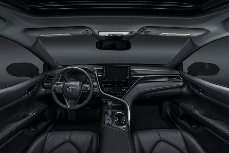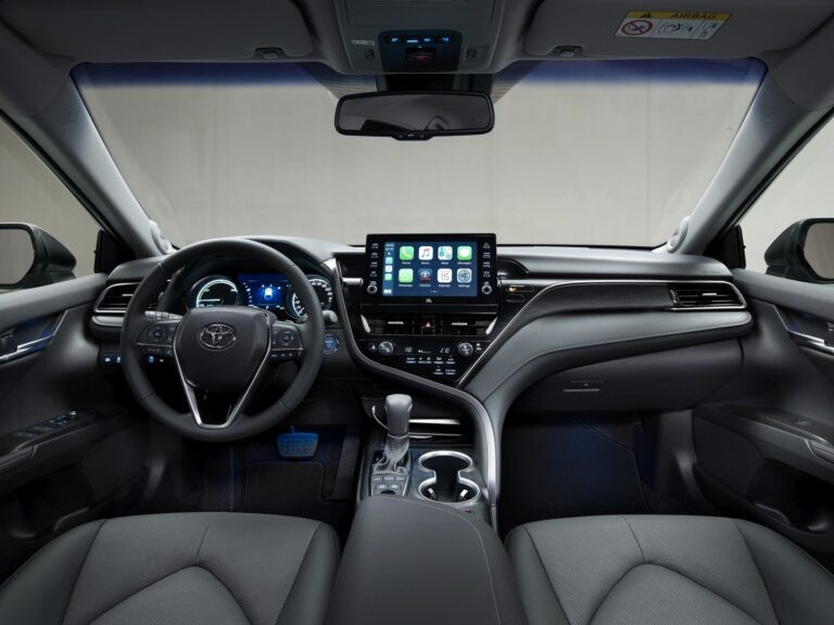 Wnętrze Camry było standardowo wyposażone we wszystkie wersje w 7-calowy ekran dotykowy wyświetlający różne informacje w obrębie zestawu wskaźników. Opcjonalnie oferowano też wyświetlacz HUD (Heads-up display) o przekątnej 10 cali. System infotainment w modelu Camry mógł być wyposażony w ekran dotykowy o przekątnej 7 lub 9 cali, w zależności od poziomu wyposażenia i opcji.