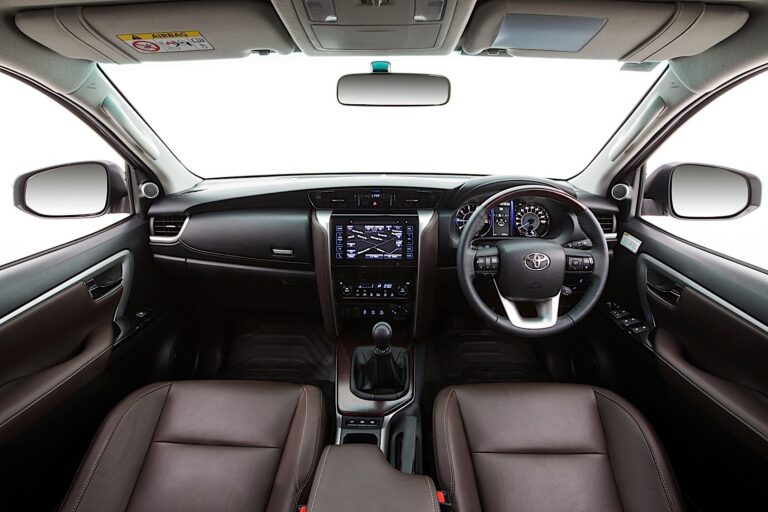 Kamera do tyłu jest standardem we wszystkich wariantach, a także siedem poduszek powietrznych, system asystencji startu pod górę oraz sygnał awaryjnego hamowania. Toyota spodziewa się, że Fortuner uzyska najwyższą pięciogwiazdkową ocenę bezpieczeństwa.