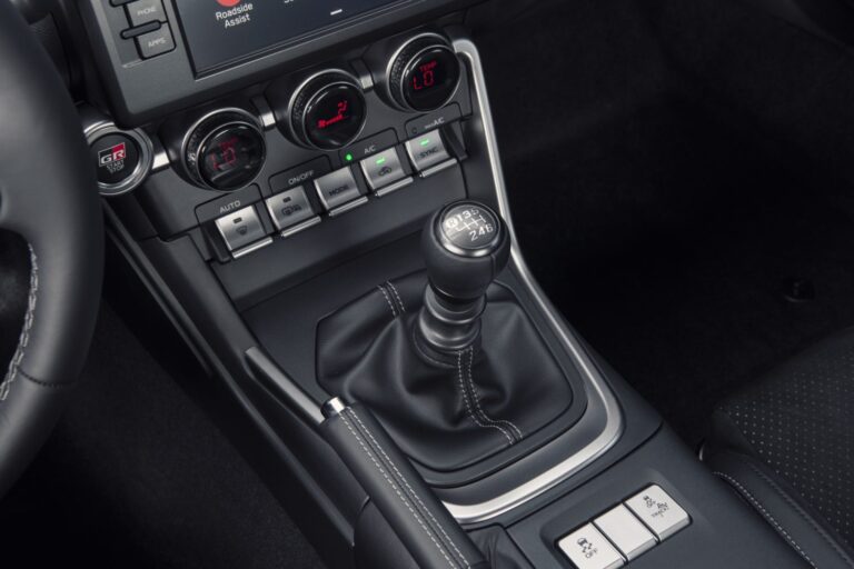 Purystom samochodów sportowych spodoba się sześciobiegowa manualna skrzynia biegów w GR 86. Przy naciśnięciu przycisku kierowcy mogą włączyć tryb torowy lub wyłączyć kontrolę stabilności pojazdu (VSC). Kształt dźwigni zmiany biegów został zoptymalizowany dla gładkiej, przyjemnej zmiany biegów, niezależnie od tego, czy przechodzisz z 2. na 3. bieg, czy redukujesz z 5. na 4. W dodatku dodano synchronizator węglowy, aby poprawić zmianę biegów na 4. bieg. Manualna skrzynia biegów wykorzystuje nowy olej o niskiej lepkości i łożyska dla płynnej operacyjności zmiany biegów przy wyższym momencie obrotowym silnika 2.4L.