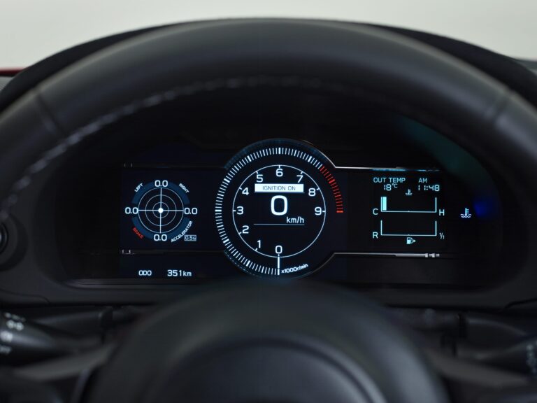 GR 86 wyposażony jest w system inteligentnego klucza Toyoty, działający zarówno przy drzwiach kierowcy, jak i pasażera. Po wejściu do środka, kierowcy znajdą poziomo skonfigurowany panel instrumentów dla czystego widoku. Przyciskiem uruchamiającego można włączyć animację logo GR 86 na 7-calowym wyświetlaczu wieloinformacyjnym TFT. Treść wyświetlacza różni się w zależności od tego, czy kierowcy są w trybie Normalnym, Sportowym, Śnieżnym czy Torowym (MT dostępny jest tylko w trybie torowym). W trybie sportowym wokół prędkościomierza pojawia się czerwona obwódka dla bardziej agresywnego wyglądu. Tryb torowy został opracowany z udziałem kierowców wyścigowych i wyraźnie wyświetla zakres obrotów w centrum, temperatury oleju i płynu chłodzącego oraz stoper.