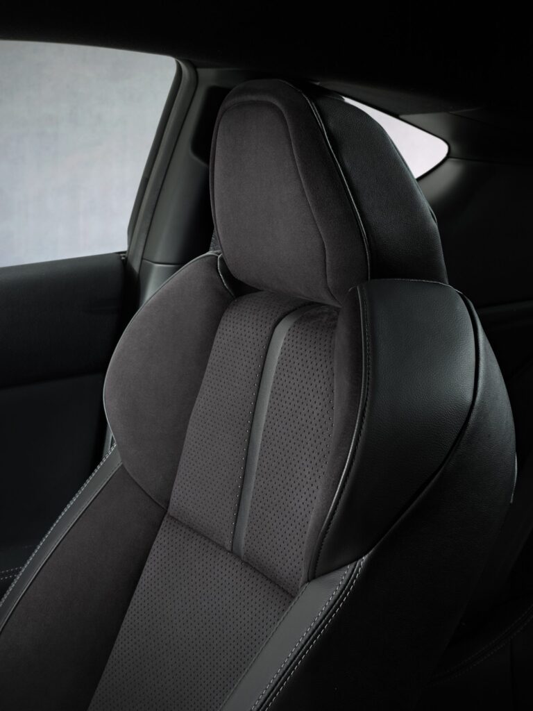 Fotele przednie w wersji Premium mają sześć regulacji w pionie i są wykończone czarną i srebrną Alcantarą z bocznymi podparciami wykonanymi ze skóry. Czarne i srebrne akcenty kontynuują się w kole kierownicy, pokrywie zmiany biegów oraz hamulcu ręcznym. W wersji podstawowej fotele mają sześć regulacji w pionie, wykonane z czarnej tkaniny G-embossed z tkaninowymi bocznymi podparciami. Tylne siedzenia są pokryte Alcantarą w wersji Premium i tkaniną sportową w wersji podstawowej.