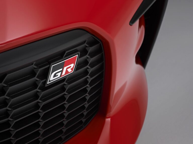 Elementy soczewek LED w kształcie paraboli nadają mu bezkompromisowy wygląd, z tym samym kształtem „L” wewnętrznie co GR Supra. Wyjątkowa siatka w kształcie G-mesh w samochodzie sportowym GR zasila powietrze do dolotu, a funkcjonalne formowanie na przednim zderzaku charakteryzuje się teksturowanym, inspirowanym skórą rekina wzorem redukującym opór.
