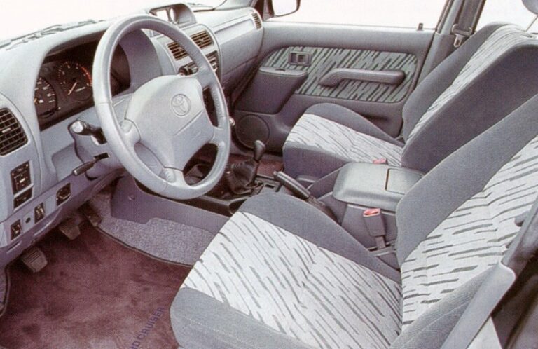 Wewnątrz, Prado oferowało do 8 miejsc w wersji 5-drzwiowej. Było sporo miejsca dla pasażerów w każdym rozmiarze. Na środkowym panelu znajdują się klimatyzacja i radioodtwarzacz. W konsoli środkowej drążek zmiany biegów i dźwignia skrzyni biegów były uzupełnione przez hamulec ręczny. Przełącznik do blokady tylnego dyferencjału znajdował się obok kolumny kierowniczej.